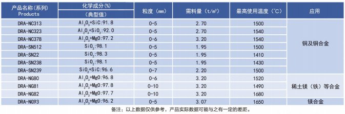 無芯爐有色金屬熔化耐材系列:DRA-NC/NG