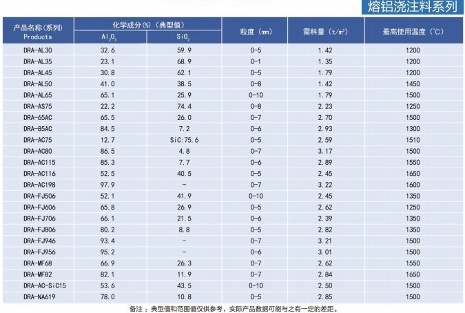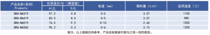 熔鋁干式爐襯料及澆注料系列:DRA-NA、AL、AC、FJ
