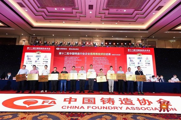 同期,在中國鑄造協(xié)會主辦的“第十八屆中國鑄造協(xié)會年會”上,我司再次被中國鑄造協(xié)會授予“中國鑄造用耐火材料(爐襯)生產(chǎn)基地”、“企業(yè)信用評價AAA級信用企業(yè)”榮譽稱號。